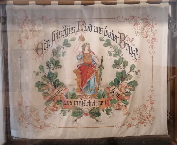 Anlässlich des 20jährigen Bestehens war es dem Verein möglich, sich durch große Opferbereitschaft aller Mitglieder eine wertvolle Vereinsfahne zu beschaffen, die der Stolz aller Sänger war. Sie trägt die Inschrift „Ein frisches Lied aus freier Brust schafft uns zur Arbeit neue Lust“. Die Fahnenweihe wurde während eines Sängerfestes mit viel Publikum von dem damaligen Amtmann Blancke vorgenommen. Noch heute ist die Fahne gut erhalten und wird vom Gesangverein „Freundschaft“ sorgsam gehütet.